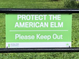 The fencing completely surrounding the elms on The Mall are a barrier indicating no one should enter the area. The second and more direct hint that the place is off-limits are the signs which are clearly posted all along the fence.