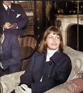 She was described as looking slender and pale with her blondish hair in a straight bob. Her fingernails were unpolished (though she is wearing gloves in this photo). Besides a trace of blue eye shadow she was not wearing any make-up or jewelry. Her attire was also simple; underneath her coat, a blue tailored suit, a mannish shirt, (later adding a slate blue scarf), and blue suede low heeled pumps.