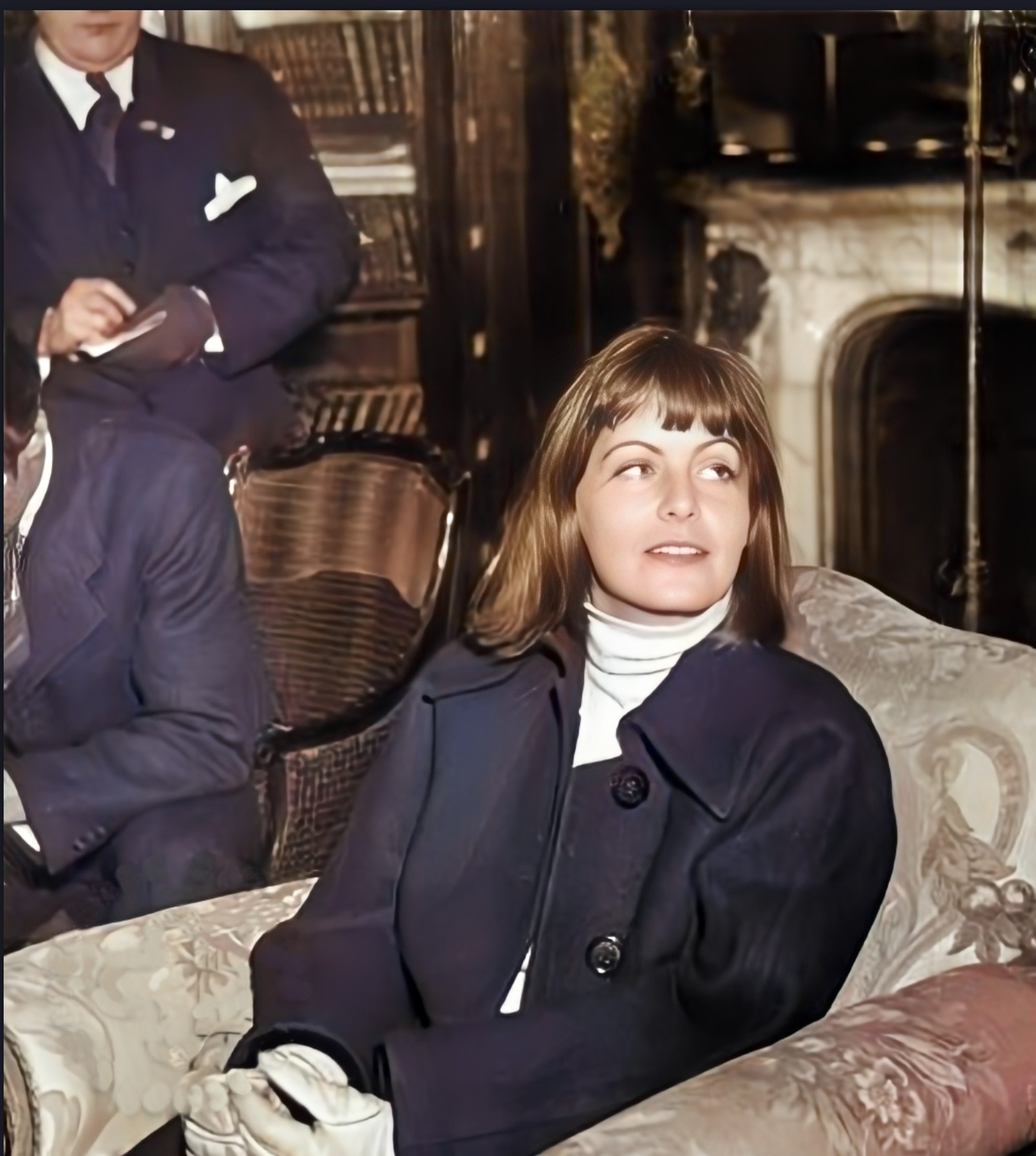 There are other photographs from this press conference where Garbo’s outfit was slightly different than in our picture (the overcoat and gloves were ditched and a scarf added). To the right is a colorized photo I attempted to make from the original.