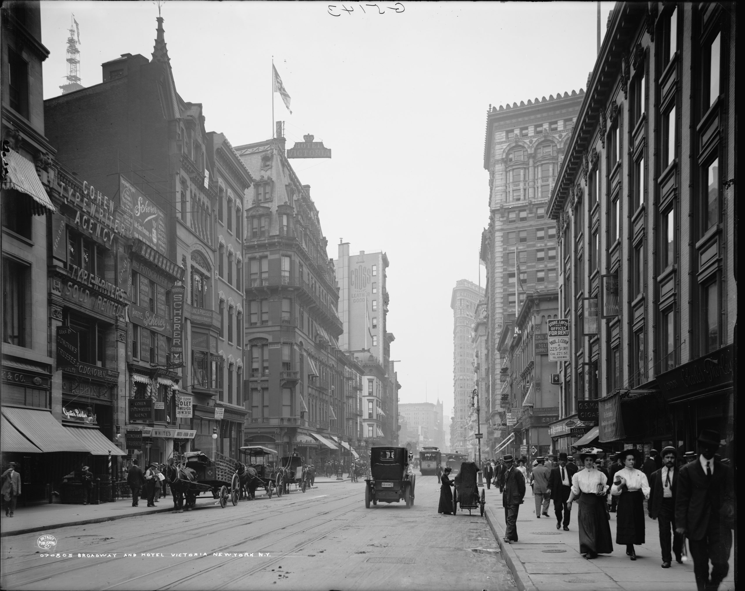 This view from the southwest corner of 28th Street looking south along Broadway was taken by the Detroit Publishing Company circa 1908.