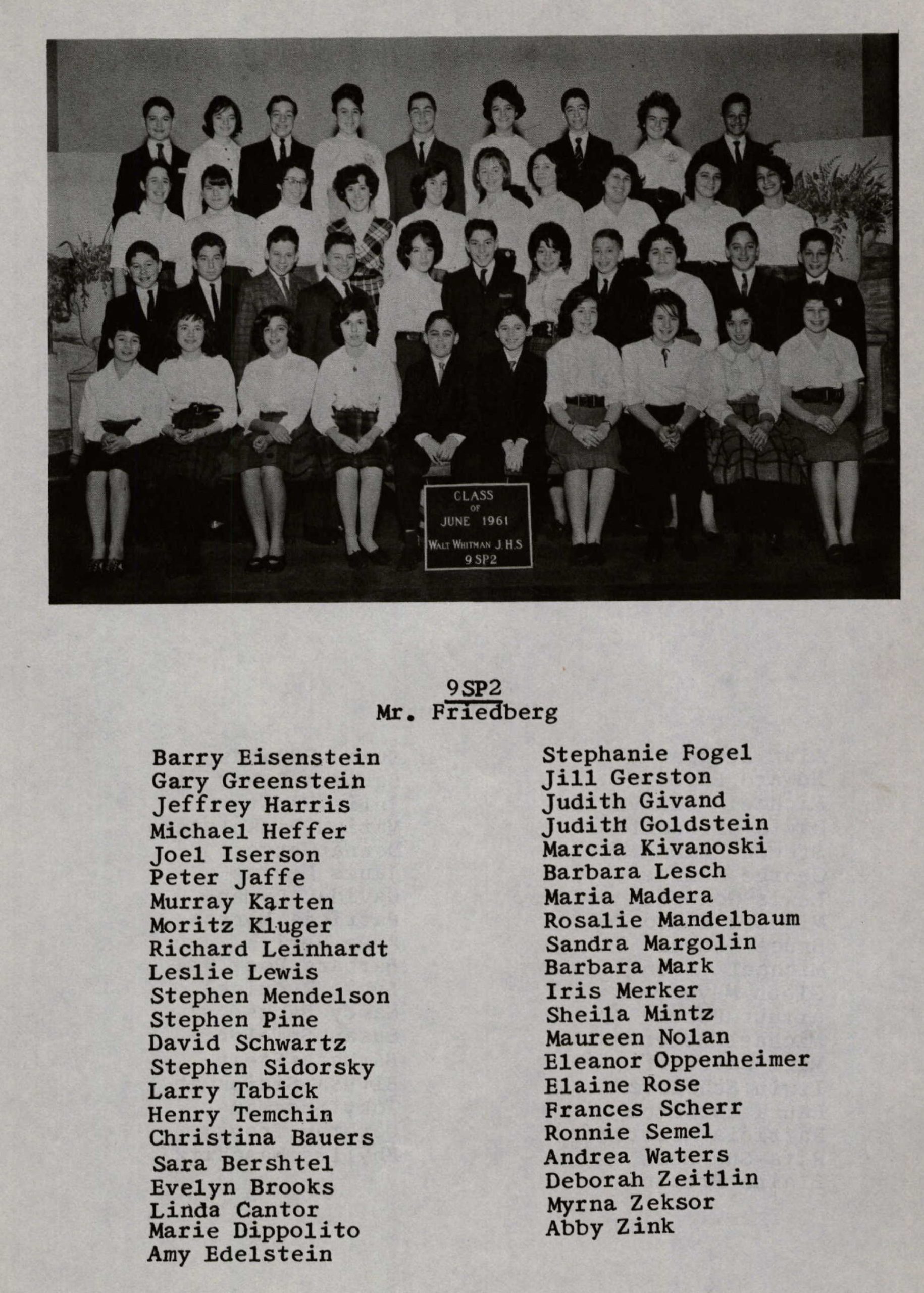 Brooklyn, NY Walt Whitman JHS 1961 Yearbook page